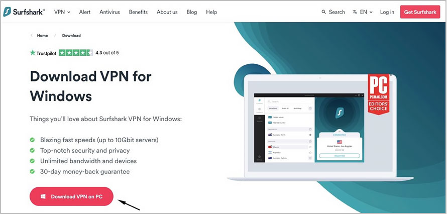 Step 1: Download via this link: https://surfshark.com/download/windows