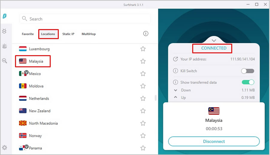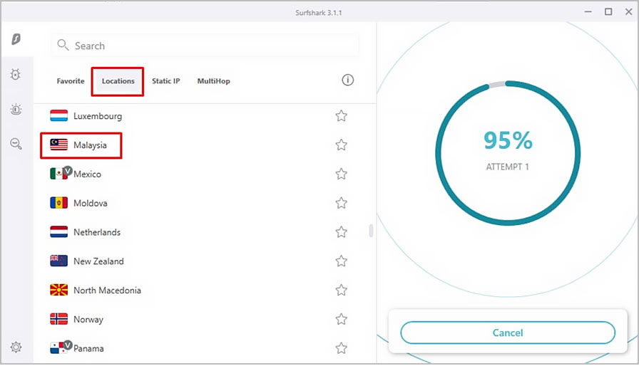 Step 4: Click Malaysia and wait for it to connect. Once connected, you may now start accessing the games that need Malaysia VPN